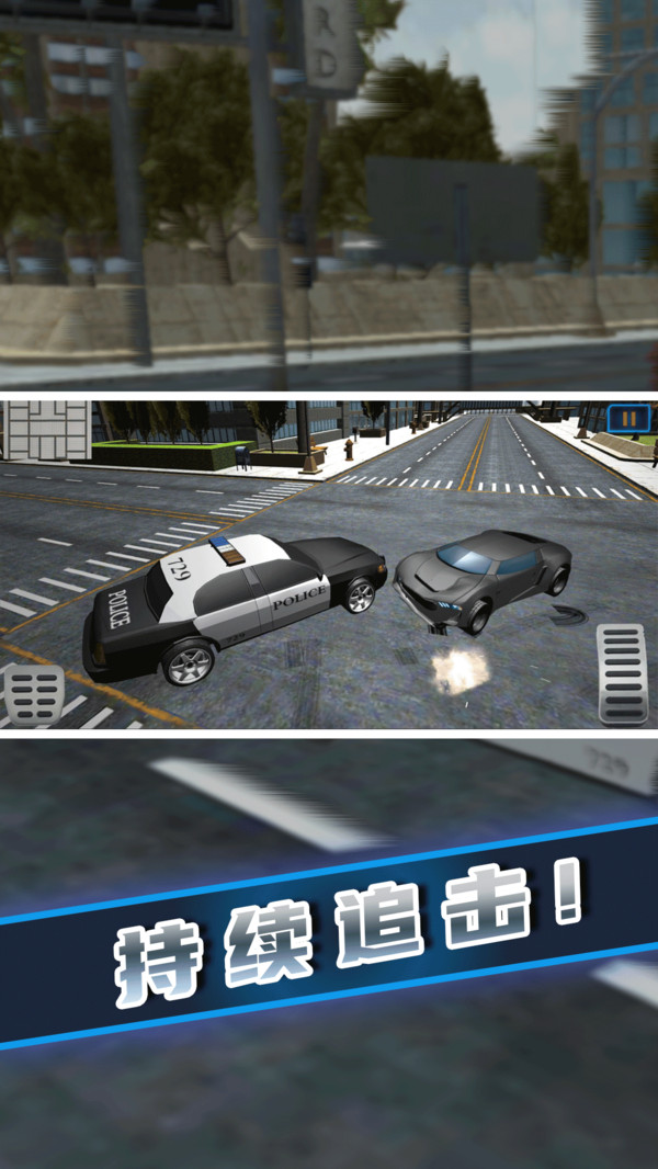 1. 游戏中,玩家须操控警车穿梭于城市之中,追击逃逸的犯罪车辆,通过碰撞等手段将其逼停,完成逮捕任务。
